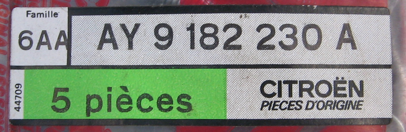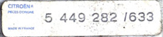 Ser man på det nyeste reservedelskatalog til 2CV, kan man stadig finde numre af denne type, f.eks. 5 490 718 som er en standard forreste lydpotte, men der er ikke nogen steder et kontrolbogstav, som altså for længst (omkring 1980) er gledet ud af kataloger, prislister og alle andre sammenhænge.