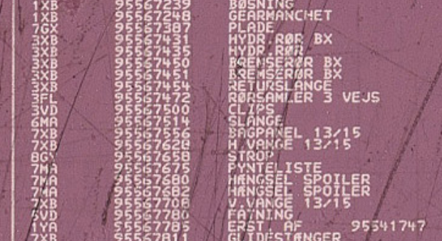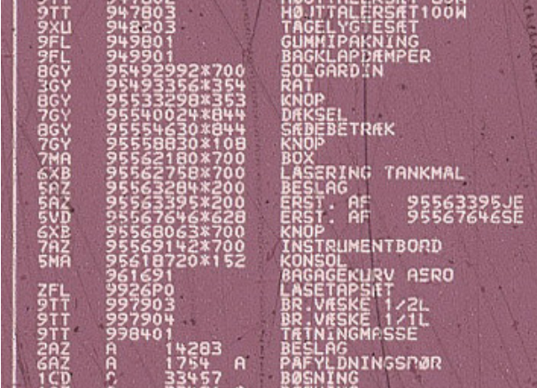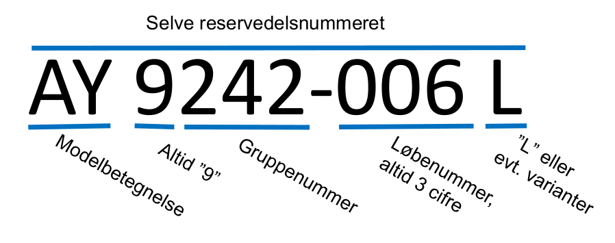 alle reservedelsnumre på dette tidspunkt på samme form: