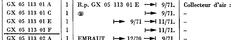 Gruppenumrene i GX-serien er kun på to cifre, og inddelingen er helt anderledes end den traditionelle med tre cifre, som Citroën ellers brugte både før, under og efter den korte periode på omkring et år, hvor man tildelte numre i GX-serien. Man kan se dem i tabellen til højre.