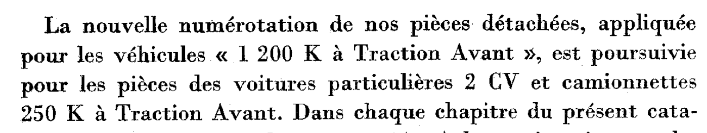 I vejledningen til brugen af nummersystemet (f.eks. hele to sider i 2CV-kataloget fra 1952, nr. 446), skriver Citroën at det er meget vigtigt at man husker alle bogstaver og ikke kun nummeret, da man ellers kan risikere at få bestilt en helt anden del end man havde intention om. Det er ganske sandt og virker på os som en no-brainer, men det skal ses i den kontekst, at man indtil da havde man haft et system hvor stort set alle reservedelsnumre kun bestod af tal.