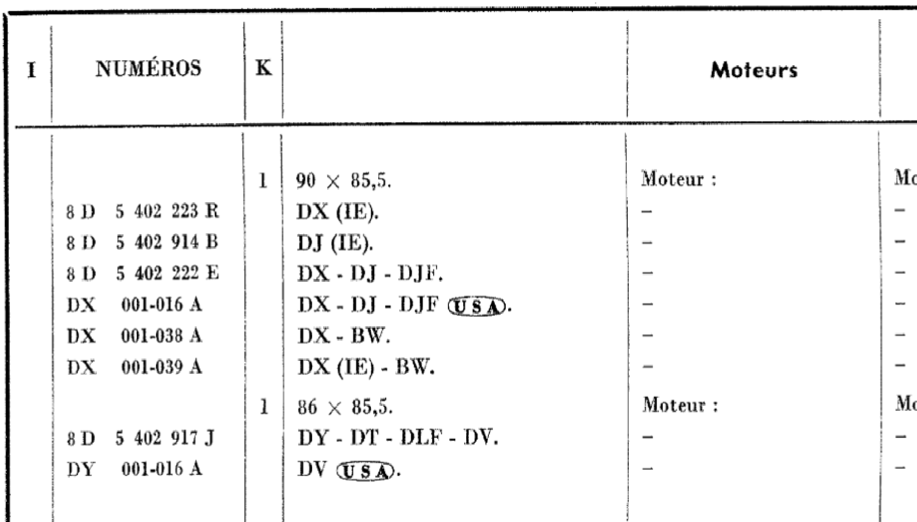 Den type reservedelsnumre er sammensat af et bogstavprefix, der angiver modeltypen, et gruppenummer, der som regel er p� 3 cifre (startende med nummeret p� hovedgruppen), der angiver hvilket organ p� bilen, der er tale om, og som ogs� bruges i reparationsh�ndb�ger m.v., og et nummer p� 1 til 3 cifre, der angiver pr�cis hvilken del af det p�g�ldende organ, der er tale om. Endelig kan det v�re efterfulgt af et bogstav, der bruges til at angive forskellige udgaver/varianter af den samme del, f.eks. h�jre/venstre eller �ndret udf�relse. F.eks. er AZ 313 01 en koblingsskive til en 2CV personbil af den type, der bruges sammen med udrykkerleje i grafit, medens AY 313 01 er en koblingsskive til den type kobling, hvor udrykkerlejet er et kugleleje. AZ 313 01 a er en koblingsskive med 10 riller, der blev brugt f�r april 1966, medens AZ 313 01 c er en type med 18 riller, der blev brugt efter denne dato. Hvis s�danne suffix-bogstaver bruges til at angive forskel p� h�jre/venstre, angiver det f�rste af de to bogstaver i alfabetisk r�kkef�lge som regel venstre.
