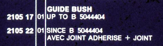 Der er dog undtagelser som her i det andet eksempel. Her er den gamle model bøsning monteret op til B 5044404 og den nye udgave fra samme nummer. Da jeg omtalte en tilsvarende problemstilling i starten af denne artikel, handlede det om en hel måned, hvor man kunne være i tvivl, men problemet er derimod ikke så stort her, da det (højest) kan dreje sig om en enkelt bil i hele verden, hvor man kan være i tvivl.