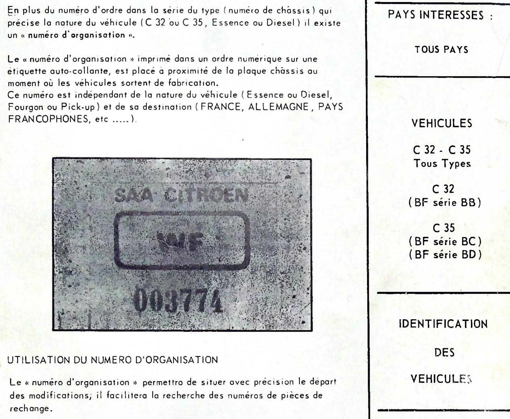 C35 har også et særligt "Numéro d'Organisation" som er omtalt første gang i Note Technique No. 4-C fra d. 12/3-75.