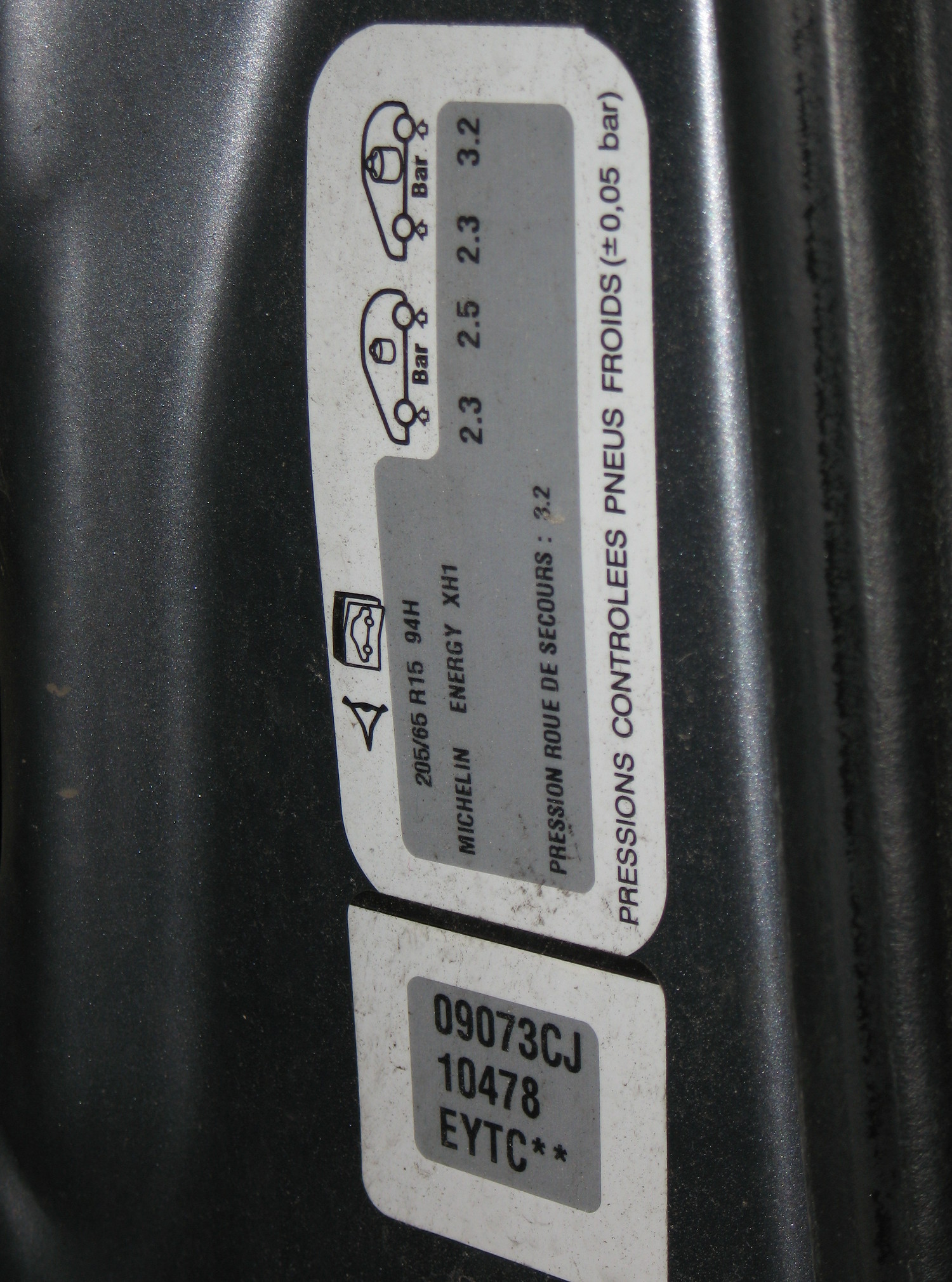 | Xantia | På torpedopladen lige ved den højre forreste affjedringsgaskugle. På dette sted står farvekoden, og med lidt mindre tegn oven over findes PR-nummeret. |