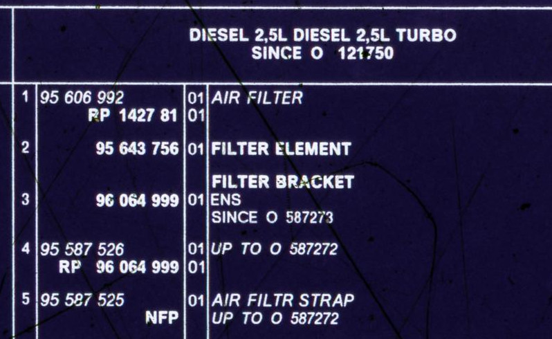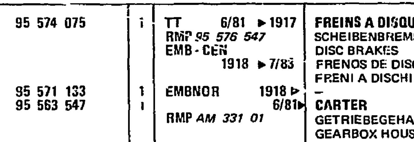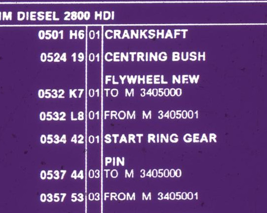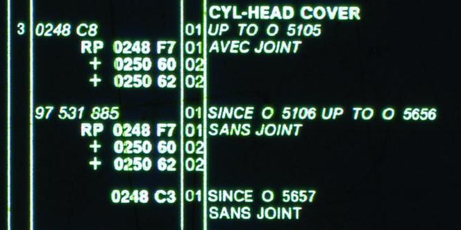 Det er ingen nyhed at motorer og gearkasser er forsynet med en plade med deres eget serienummer på, men fra omkring midten af 1990'erne dukker der ud over numre med O og S foran, også to yderligere nummereringer op i reservedelskatalogerne, nemlig M og B efterfulgt af 7 cifre, der angiver disse serienumre på motorer hhv. gearkasser. B står for Boîte de vitesses.