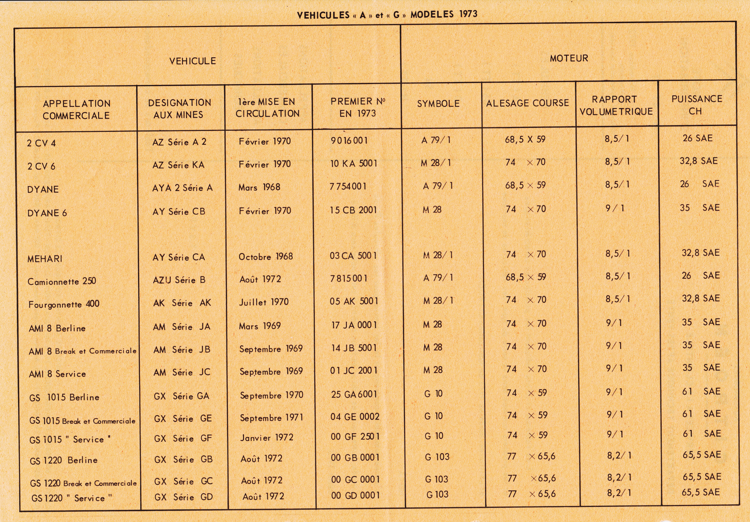 Fra og med årgang 1977 var der i stelnummerpladen et kvadratisk oppræget felt øverst til venstre, som gav plads til at modelårets to cifre kunne bankes i. Det har formodentlig været et krav for alle biler i visse lande. For A-modellernes vedkommende er dette dokumenteret i Note Technique 187-A fra 1976 og der er en beskrivelse af det i Le Double Chevron nr 45. Et par eksempler kan ses her.