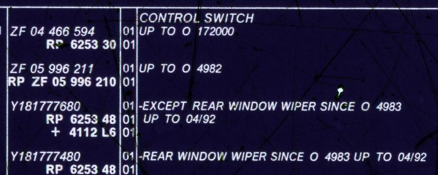 I en senere udgave af samme katalog MIC00224A fra 1998, er bogstavet foran de mystiske tidsangivelser er rettet fra O til S, således som man kan se i eksemplet her til højre. Dette refererer altså til stelnumre, som man har valgt at bruge i stedet for at oversætte dem til PR-numre - givetvis fordi Fiat foretrækker at bruge stelnumre til at angive ændringer i produktionen.